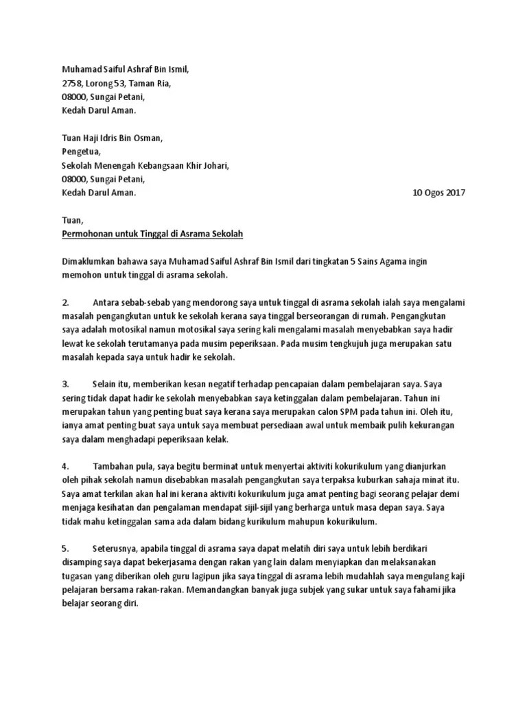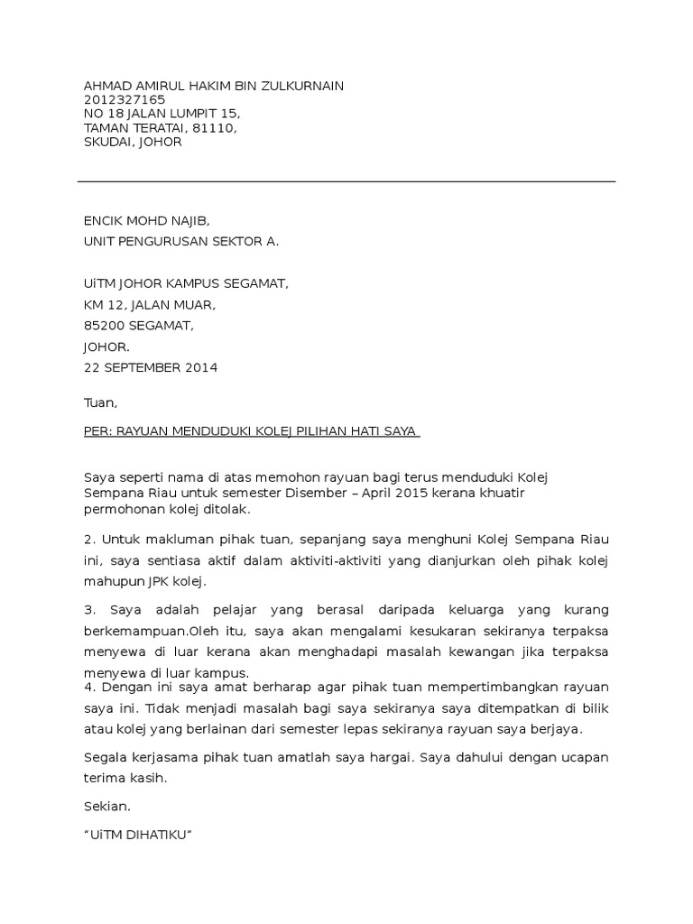 Contoh Surat Rayuan Kolej Kediaman Pdf